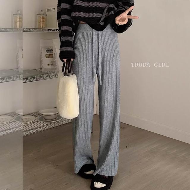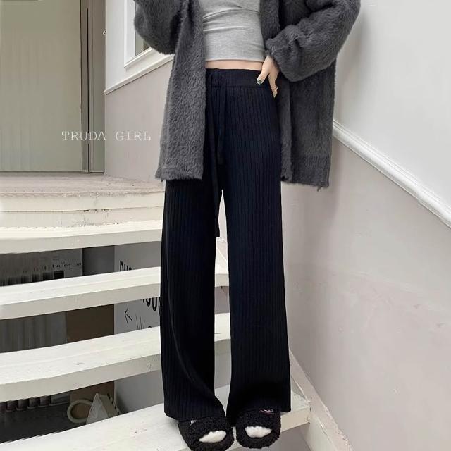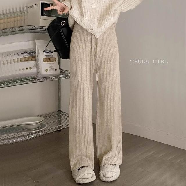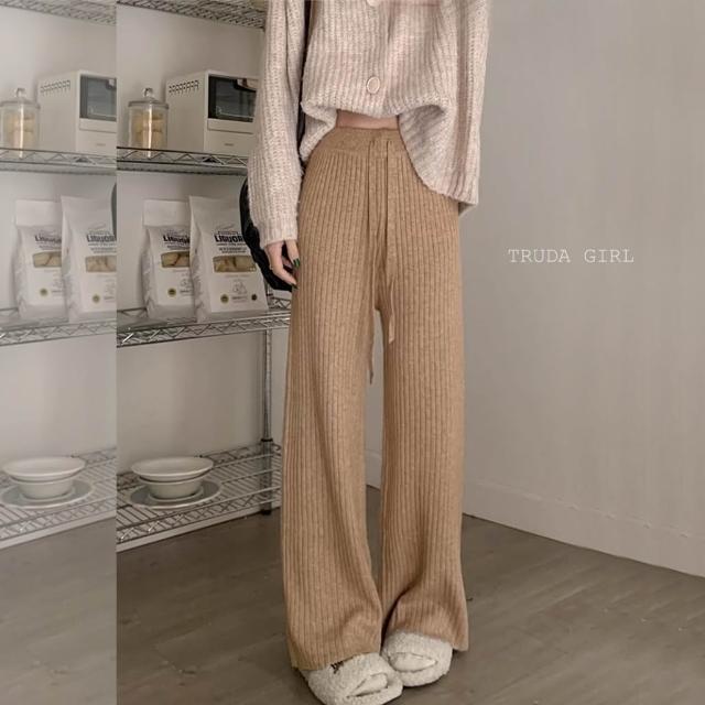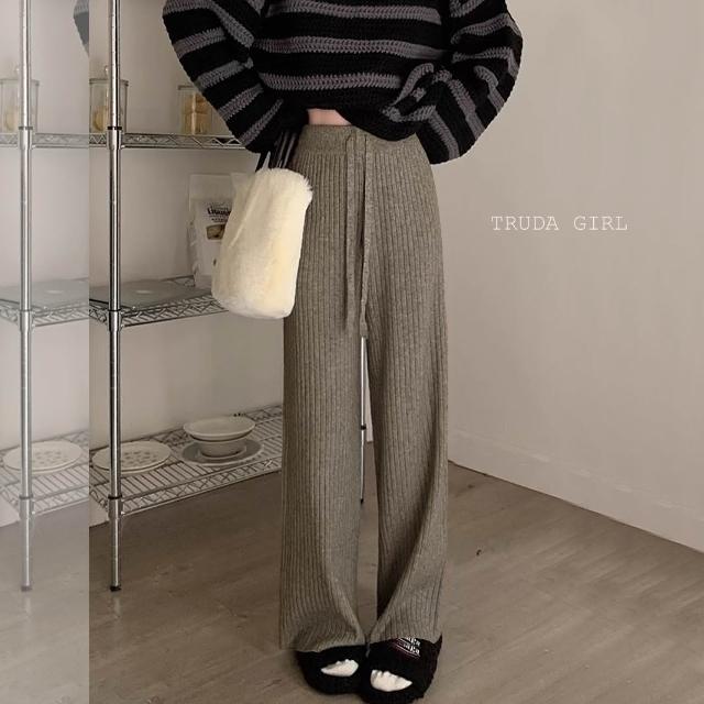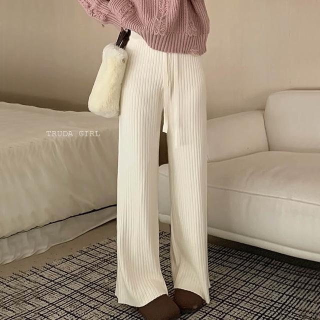 《杜達女孩》坑條款重磅加厚秋冬針織長褲 加厚包心紗針織闊腿褲 針織長褲 針織寬褲 鬆緊腰直筒褲 針織褲 保暖長褲 女長褲