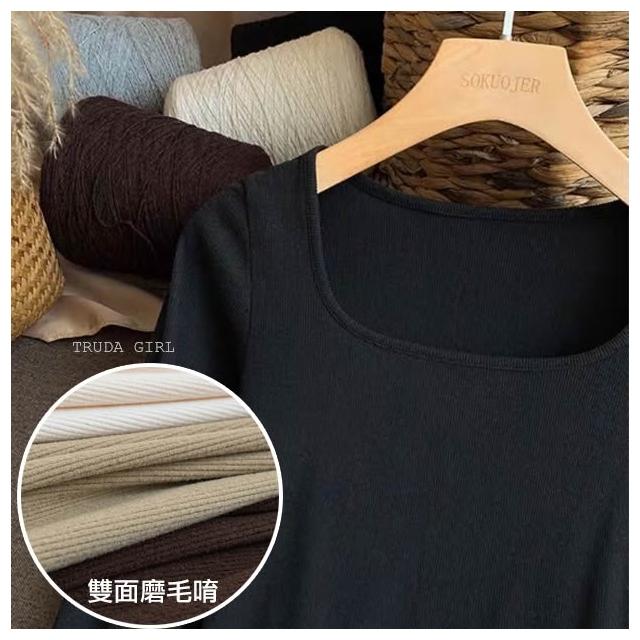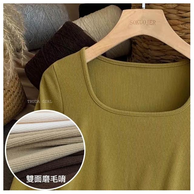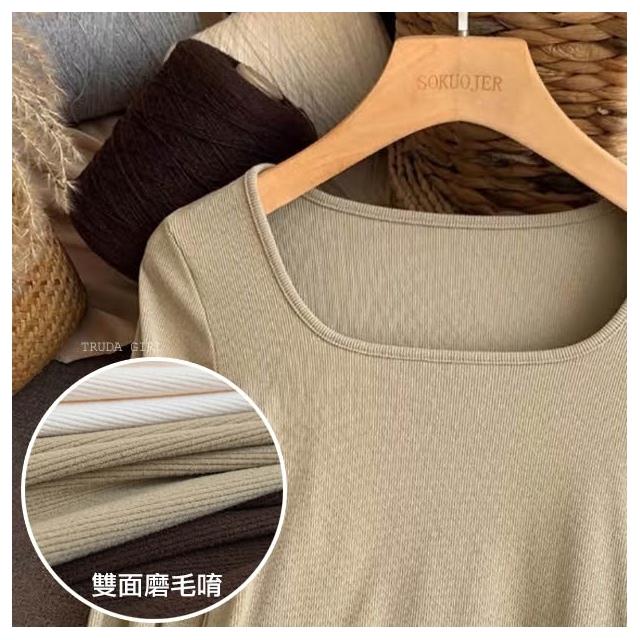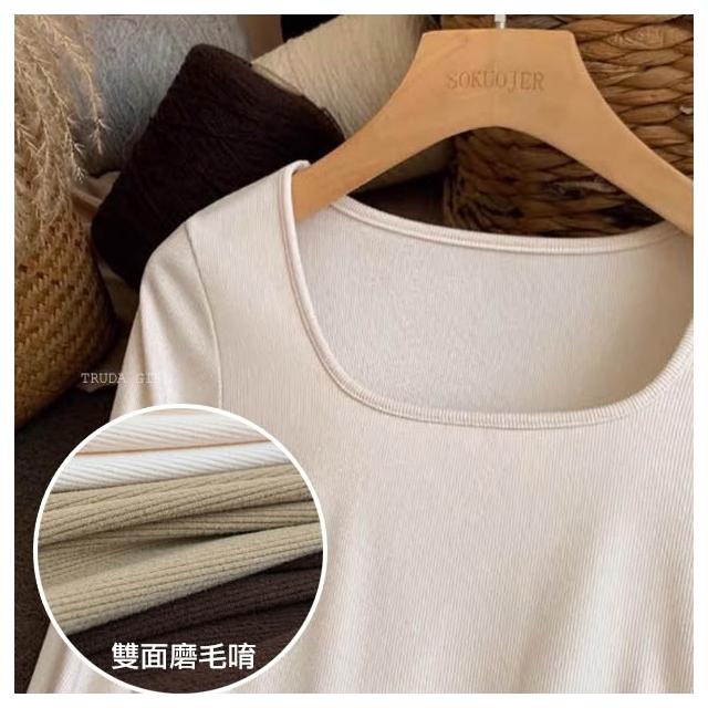 《杜達女孩》剛需高訂版雙面磨毛長袖上衣 方領上衣 長袖上衣 內搭外穿 保暖內搭 螺紋上衣 磨毛內搭 發熱衣 内搭衣打底衣
