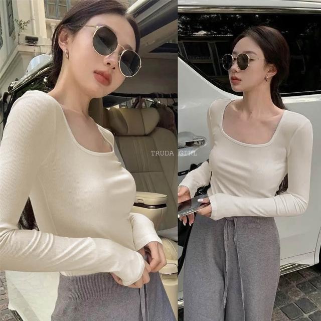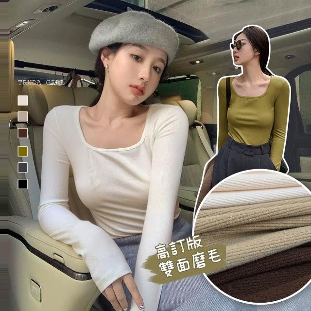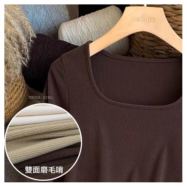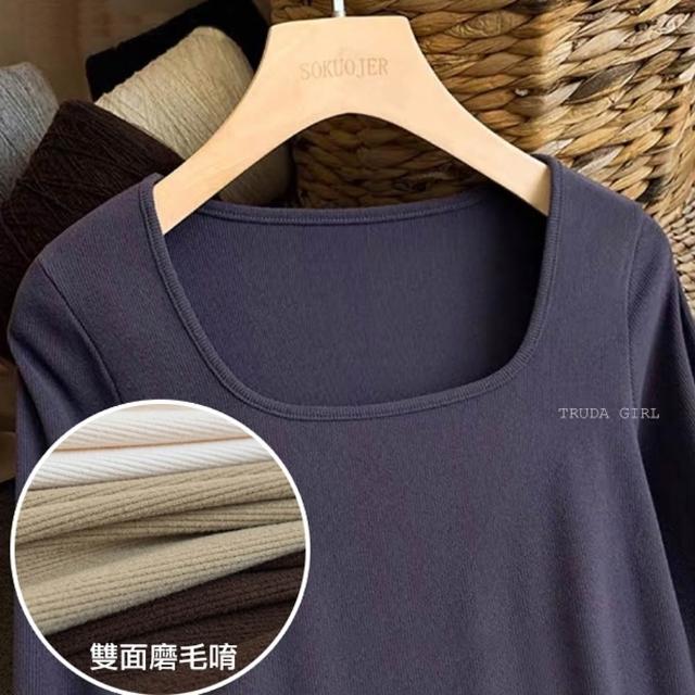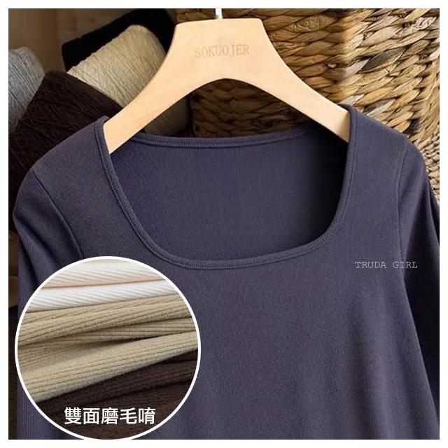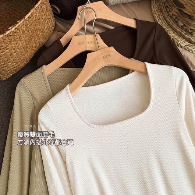 《杜達女孩》剛需高訂版雙面磨毛長袖上衣 方領上衣 長袖上衣 內搭外穿 保暖內搭 螺紋上衣 磨毛內搭 發熱衣 内搭衣打底衣