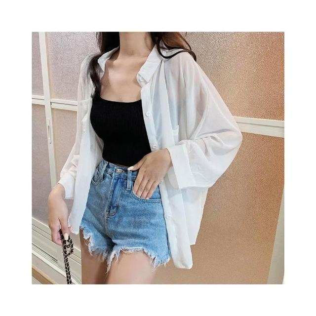 《杜達女孩》寬鬆蝙蝠袖雪紡罩衫 防曬罩衫 白色襯衫 百搭雪紡罩衫 開衫外套 薄款 防曬外套 七分袖 襯衫罩衫