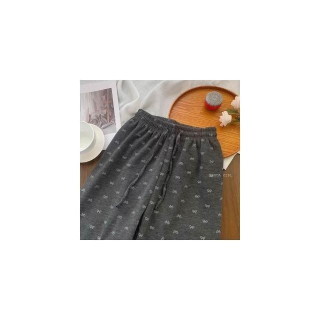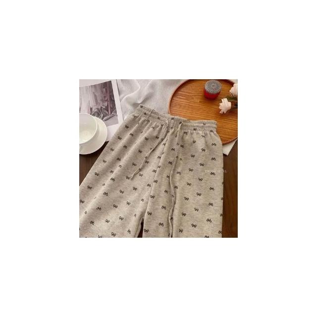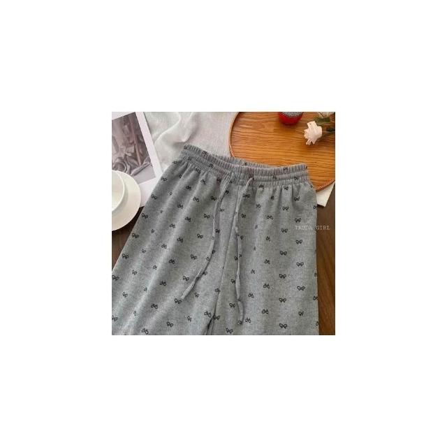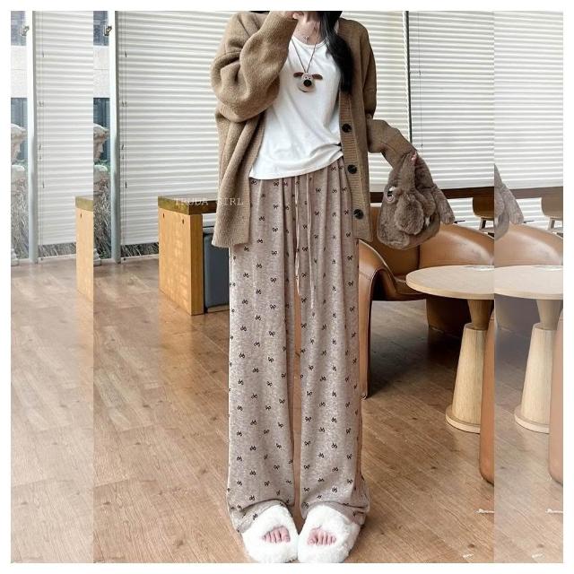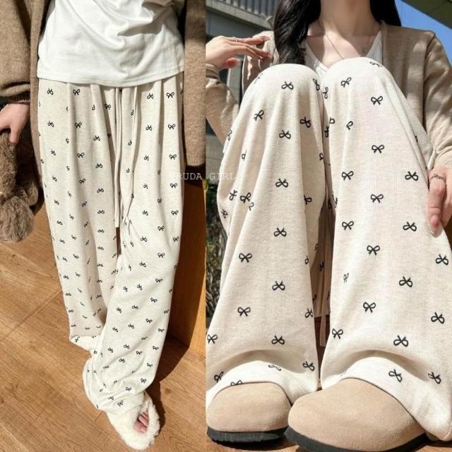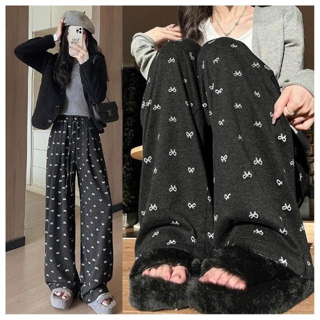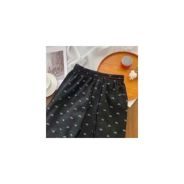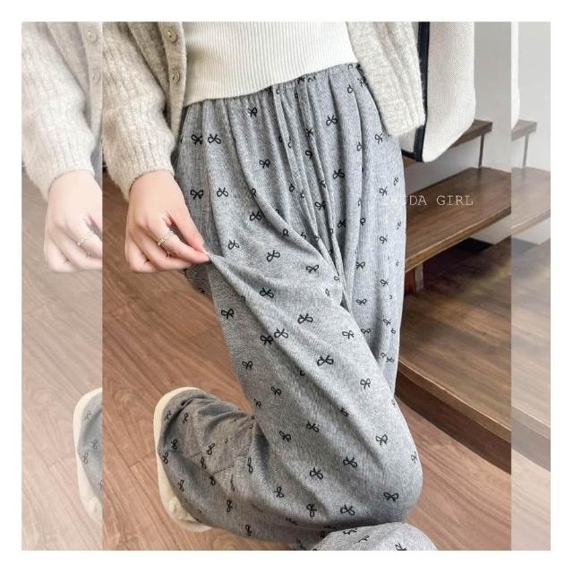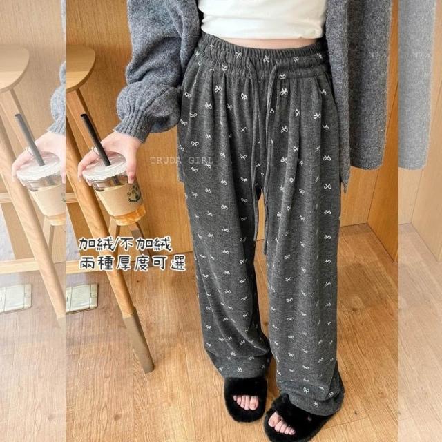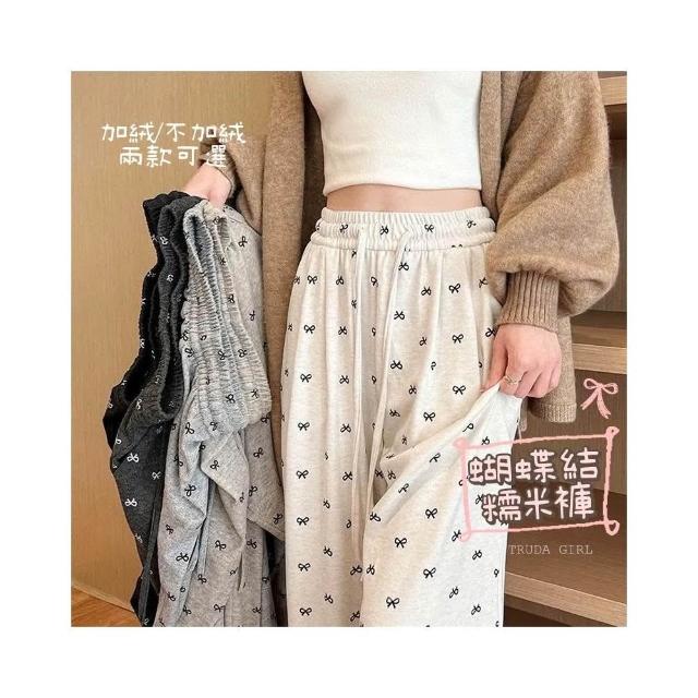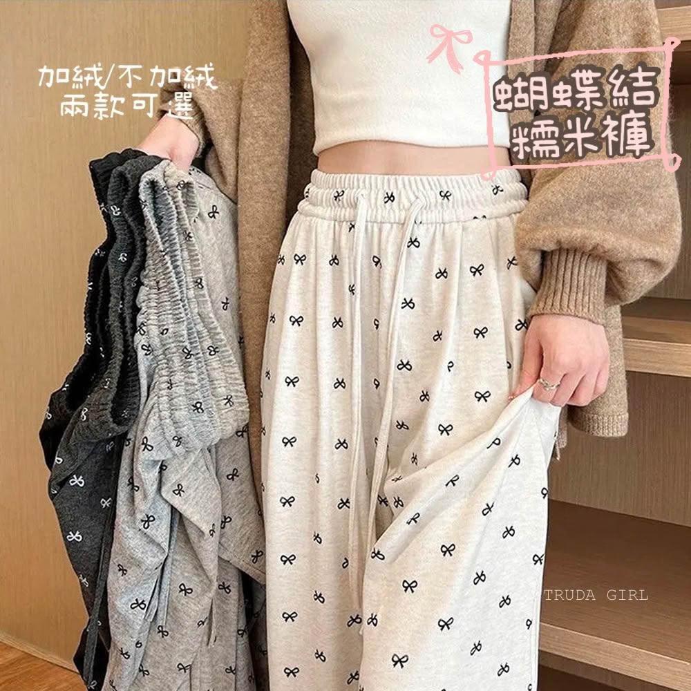 《杜達女孩》兩種厚度蝴蝶結軟糯糯米褲 保暖長褲 秋冬褲子 抽繩鬆緊腰寬褲 休閒長褲 棉質長褲 女 寬褲 長褲睡褲 運動褲