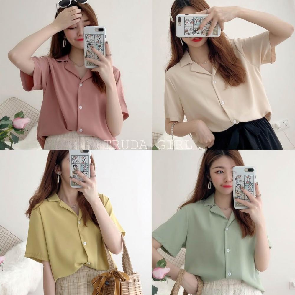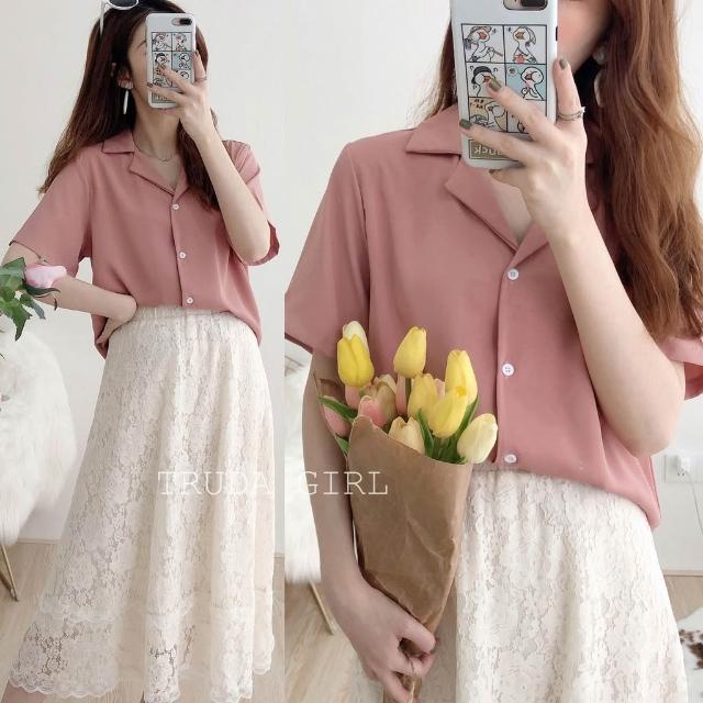 《杜達女孩》推韓色系列 小西裝領短袖襯衫 V領 百搭簡約純色襯衫 OL上班族 雪紡襯衫 短袖襯衫 雪紡上衣