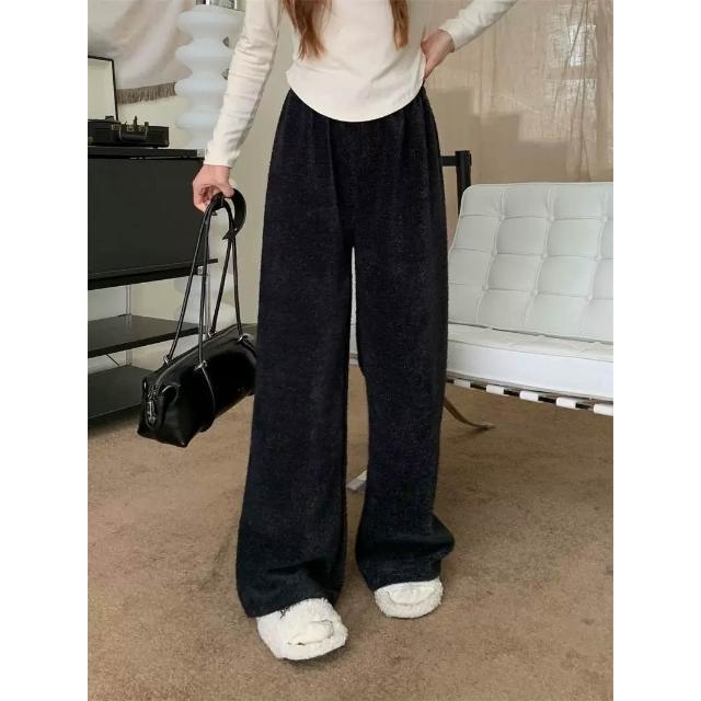 《杜達女孩》冬日雪貂絨寬褲 短絨絨毛寬褲 寬鬆長褲 水貂絨保暖長褲 毛茸茸長褲 鬆緊腰長褲 闊腿褲 長褲 秋冬褲子 女