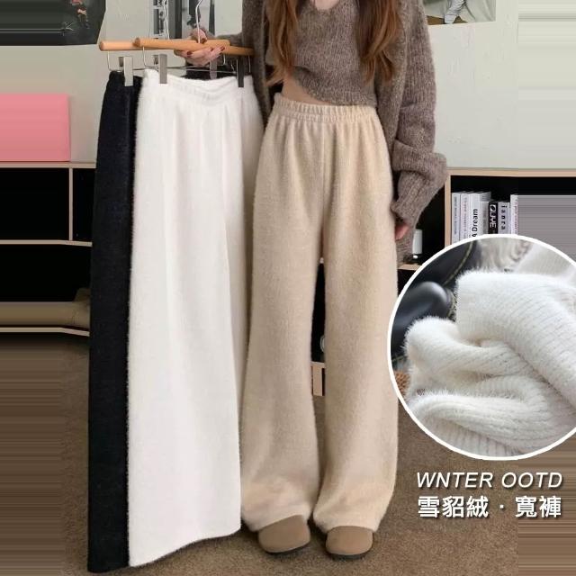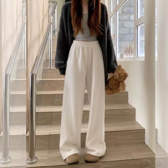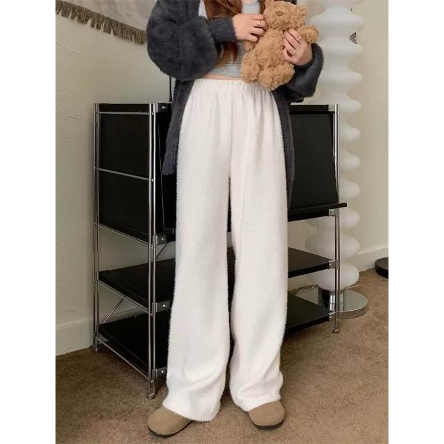《杜達女孩》冬日雪貂絨寬褲 短絨絨毛寬褲 寬鬆長褲 水貂絨保暖長褲 毛茸茸長褲 鬆緊腰長褲 闊腿褲 長褲 秋冬褲子 女