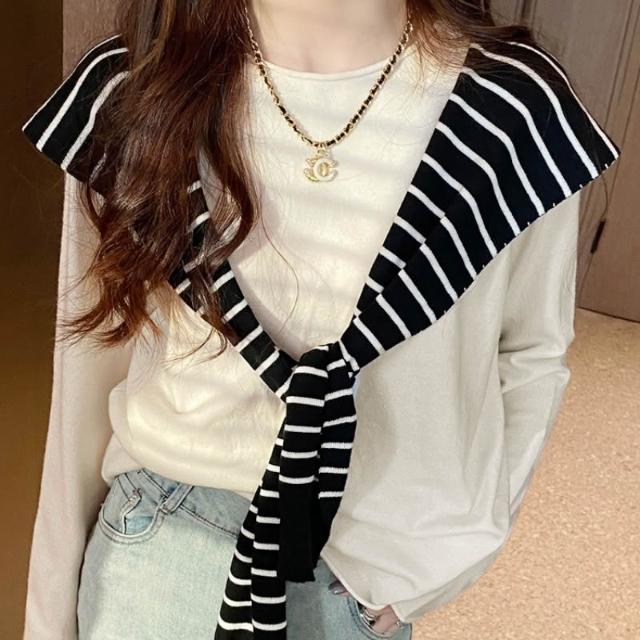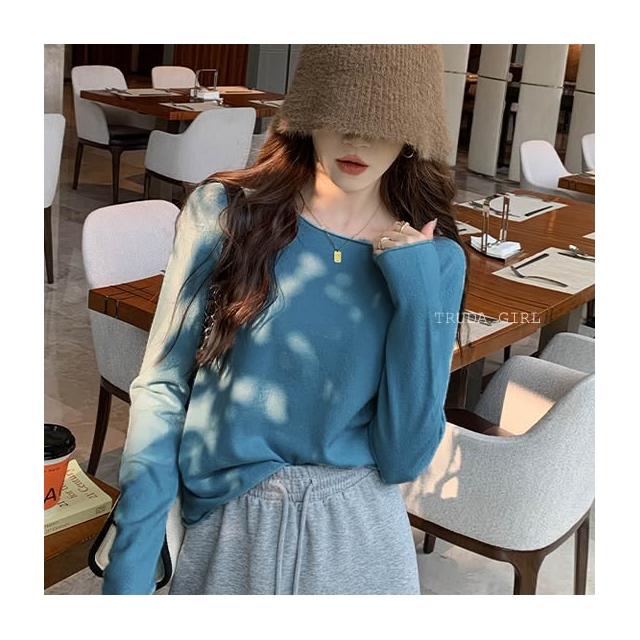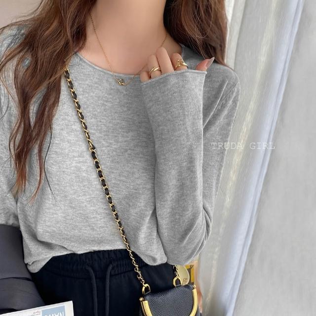 《杜達女孩》漫不經心的慵懶 卷邊不修邊針織上衣 包芯紗長袖針織 薄針織 長袖上衣 針織上衣 女 圓領上衣 薄長袖上衣