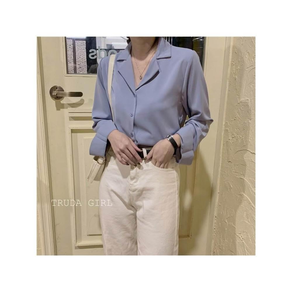 《杜達女孩》推韓色系列 小西裝領長袖襯衫 百搭簡約純色襯衫 氣質OL上班族 雪紡襯衫 長袖襯衫 雪紡上衣 女