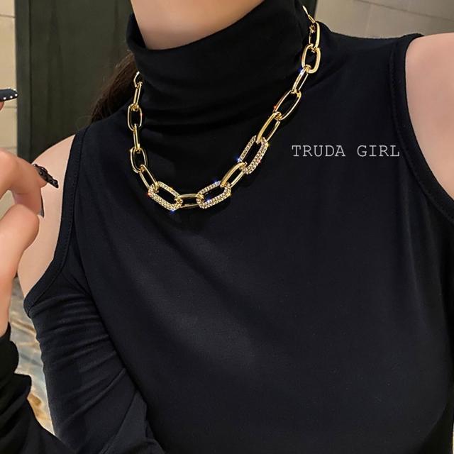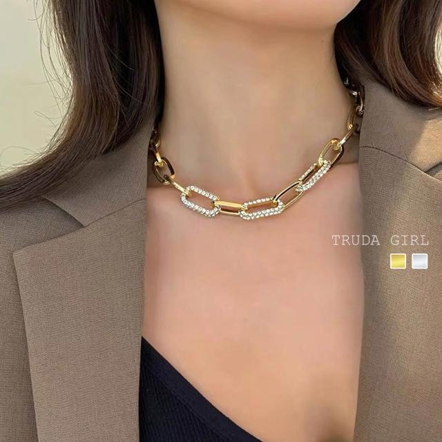 《杜達女孩》輕奢巴黎鑲鑽鍊條項鍊 鑲鑽項鍊 質感項鍊 個性項鍊 短項鍊 頸鍊 精緻項鍊 粗項鍊 鍊條造型 項鍊 飾品