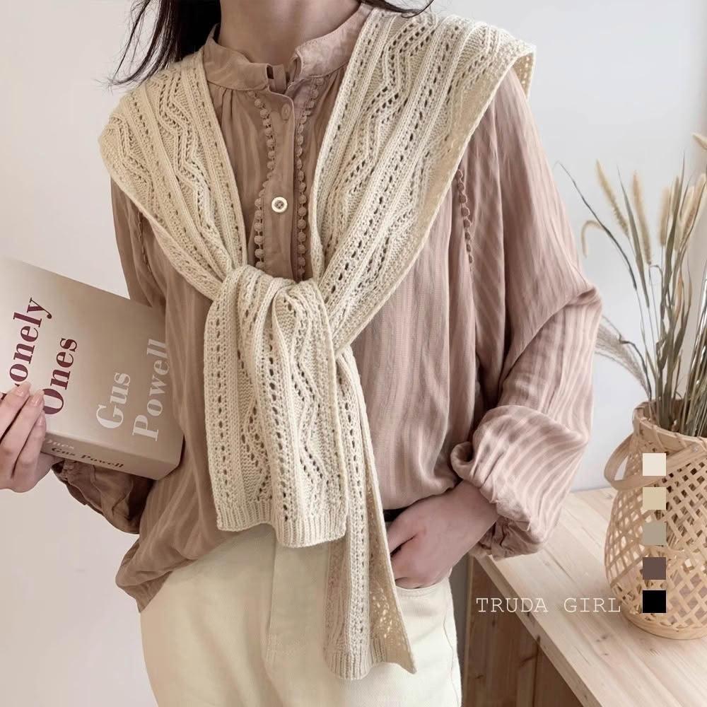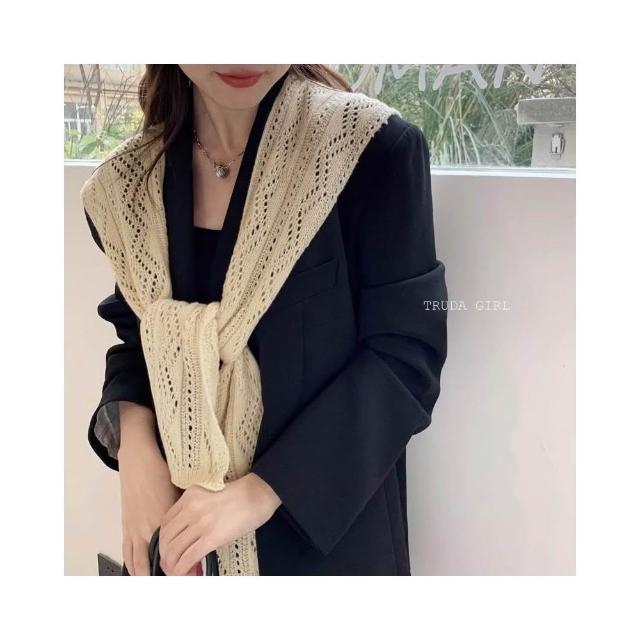 《杜達女孩》韓妞妞疊穿公式 鏤空毛線針織披肩 配件披肩 針織披肩 毛線披肩 圍巾小披肩 外搭罩衫 鈎花鏤空 坎肩外搭罩衫