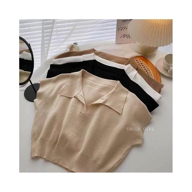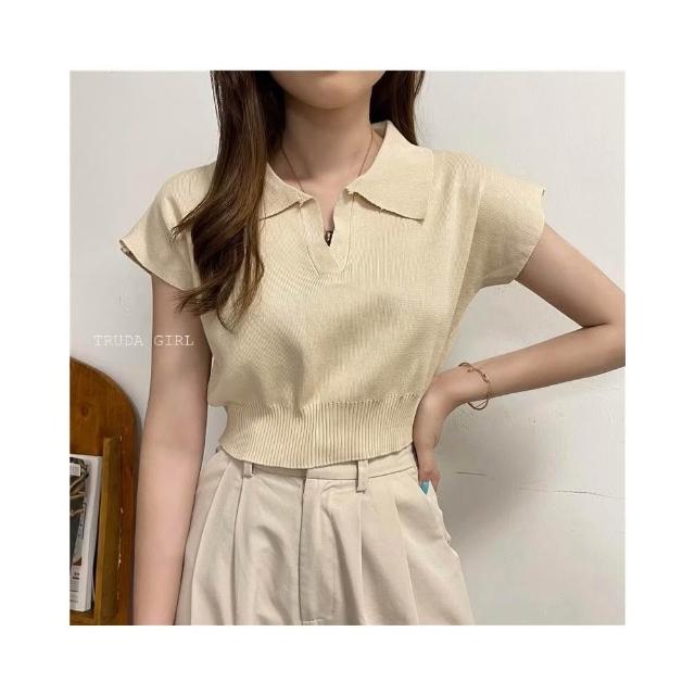 《杜達女孩》純欲女孩的翻領衫 POLO針織上衣 短袖上衣 針織上衣 短版上衣 短版露肚T 襯衫領上衣 短袖翻領上衣 女