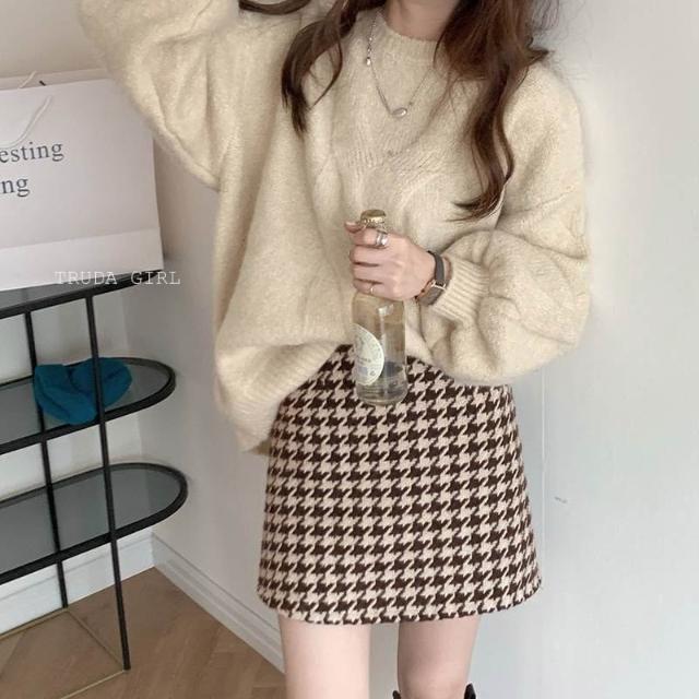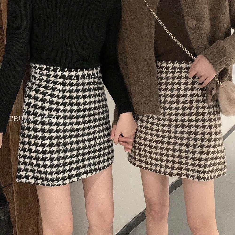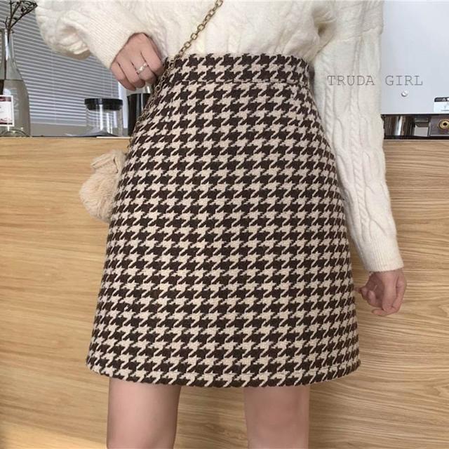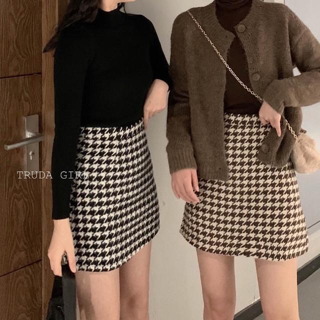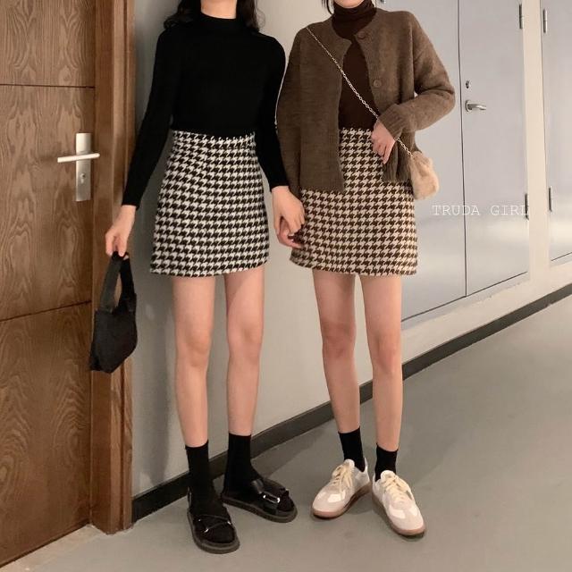 《杜達女孩》質感千鳥格紋厚磅短裙 S-L防走光短裙 千鳥格紋裙 小香風裙子 短裙 裙子 包臀裙 格紋裙 半身裙 毛呢短裙