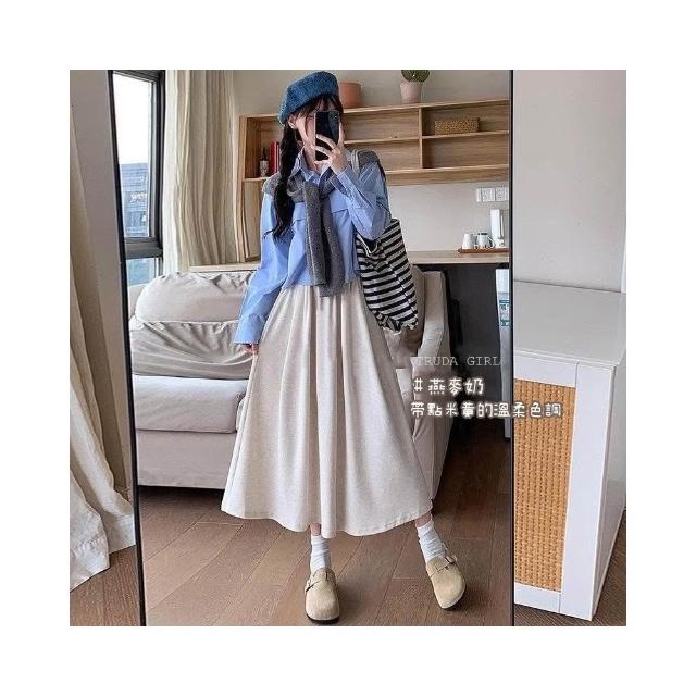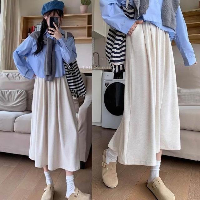 《杜達女孩》山本風糯米裙 慵懶風棉質長裙 a字裙 山本裙 溜溜裙 長裙 傘裙 遮肉顯瘦長裙 裙子 高腰長裙 赫本風長裙