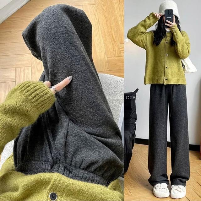 《杜達女孩》焦糖瑪奇朵羊絨糯米褲 軟糯升級 加絨秋冬寬褲 棉質寬褲 保暖長褲 鬆緊腰休閒褲 羊絨褲 針織褲 闊腿褲 長褲