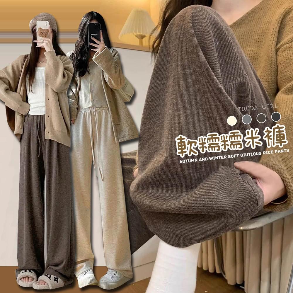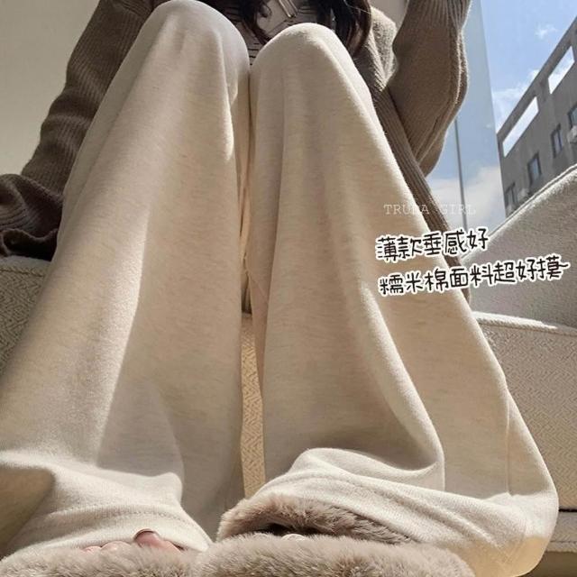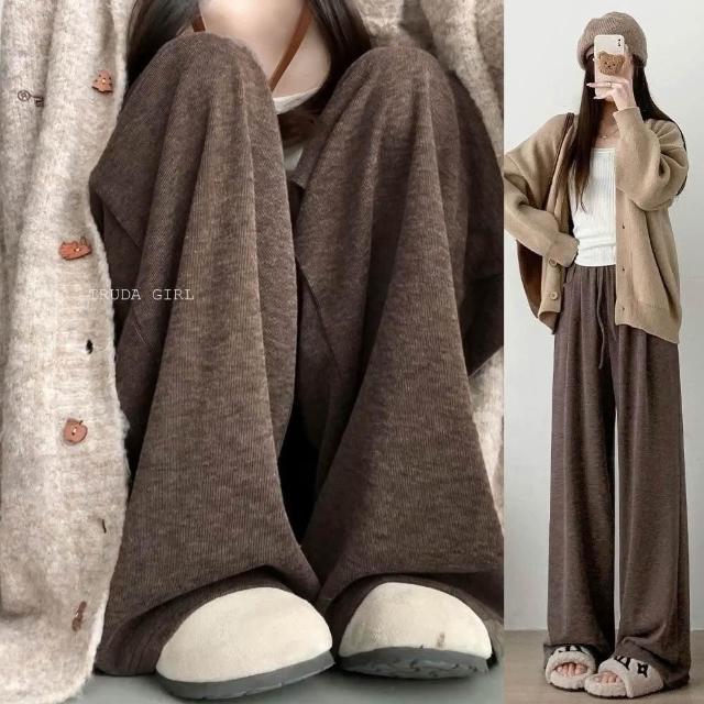 《杜達女孩》焦糖瑪奇朵羊絨糯米褲 軟糯升級 加絨秋冬寬褲 棉質寬褲 保暖長褲 鬆緊腰休閒褲 羊絨褲 針織褲 闊腿褲 長褲