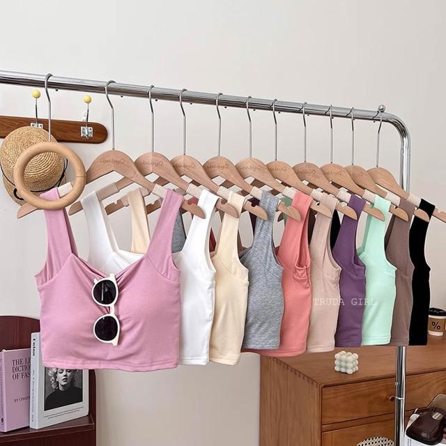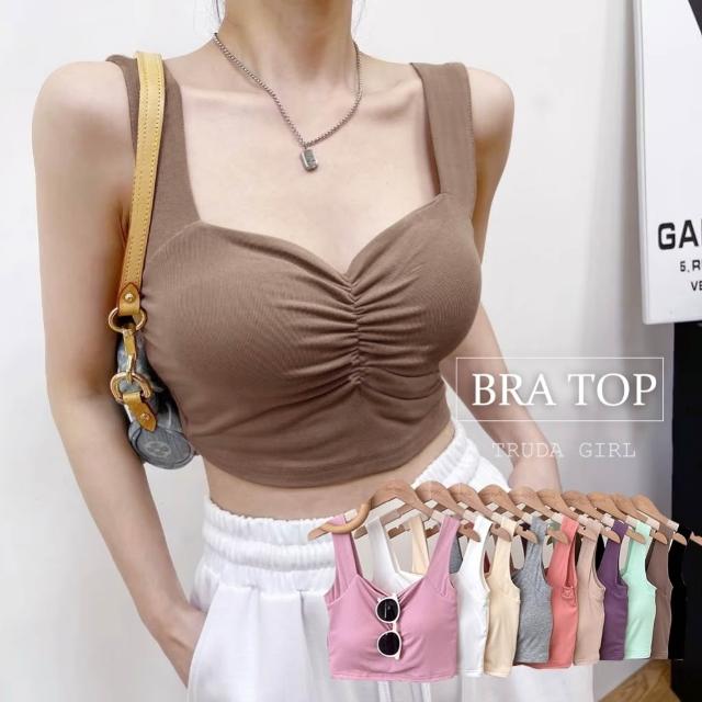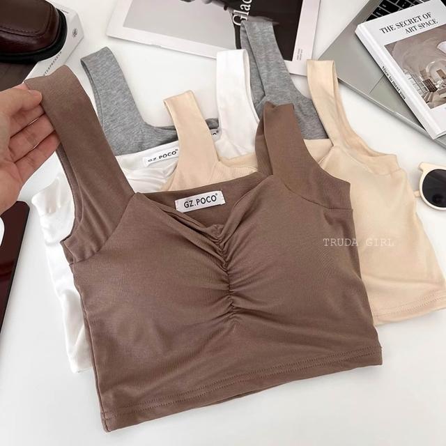 《杜達女孩》胸墊款胸前抓皺吊帶背心 寬肩帶背心 罩杯上衣 胸墊上衣 胸墊小可愛 顯胸小可愛 吊帶背心 上衣 短版背心 女