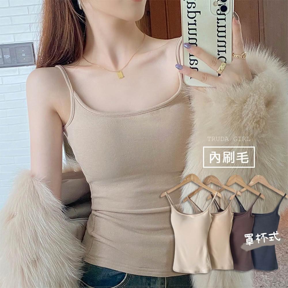 《杜達女孩》秋冬罩杯式刷毛吊帶背心 含胸墊細肩帶背心 刷毛吊帶背心 秋冬內搭背心 保暖吊帶背心 秋冬細肩帶 刷毛內搭背心