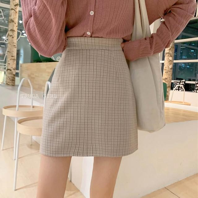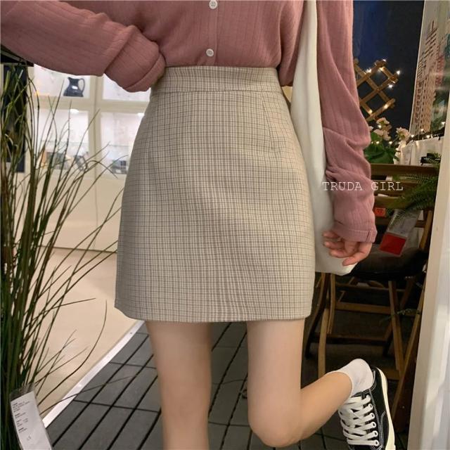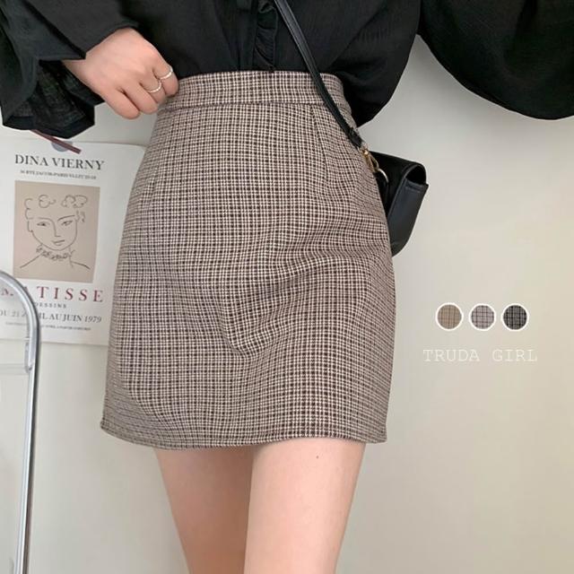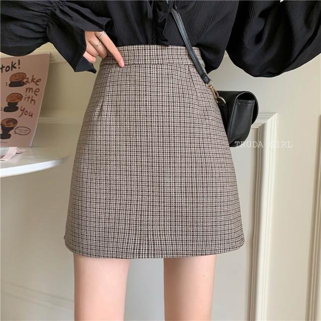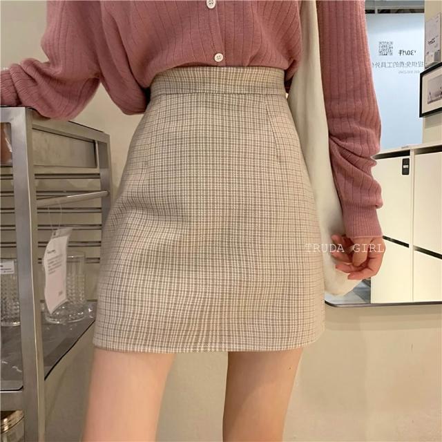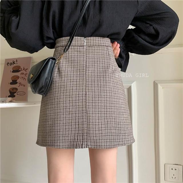 《杜達女孩》秋冬典雅小格紋防走光毛呢短裙 有內襯 格紋短裙 格子裙 裙子 短裙 包臀裙 學院風 窄裙 a字裙