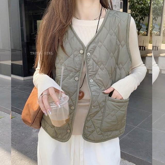 《杜達女孩》高品質棉襖背心 實穿馬甲小背心 質感菱格縫線羽絨背心 棉襖背心 保暖背心 羽絨背心女 背心 大尺碼 秋冬背心