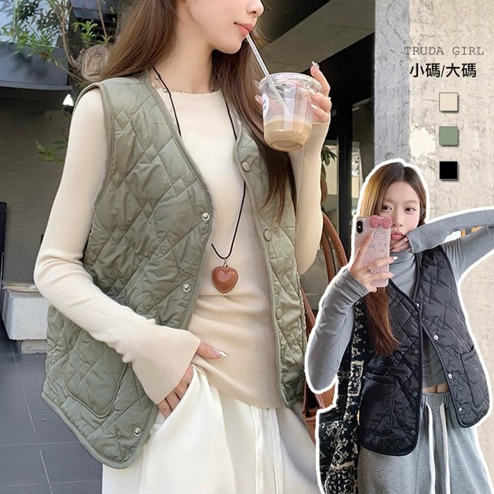 《杜達女孩》高品質棉襖背心 實穿馬甲小背心 質感菱格縫線羽絨背心 棉襖背心 保暖背心 羽絨背心女 背心 大尺碼 秋冬背心