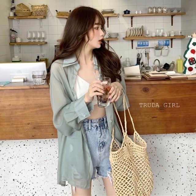 《杜達女孩》十色超仙洋氣ins雪紡防曬罩衫 長袖襯衫 雪紡罩衫 薄款 防曬外套 長袖 襯衫 罩衫 開衫外套 女