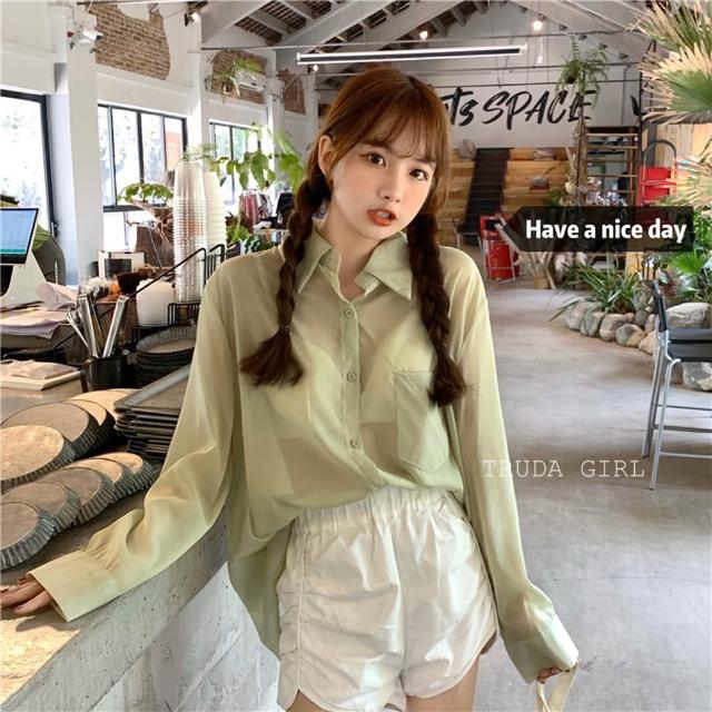 10色可選 百搭雪紡紗透膚罩衫