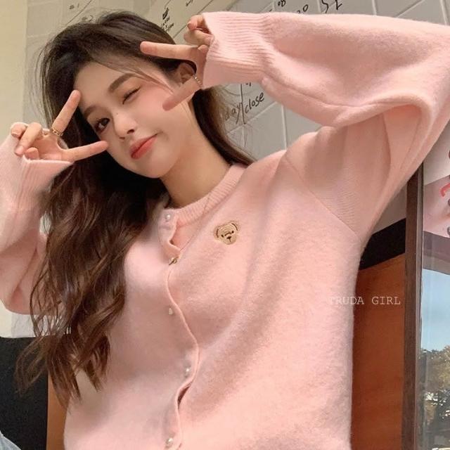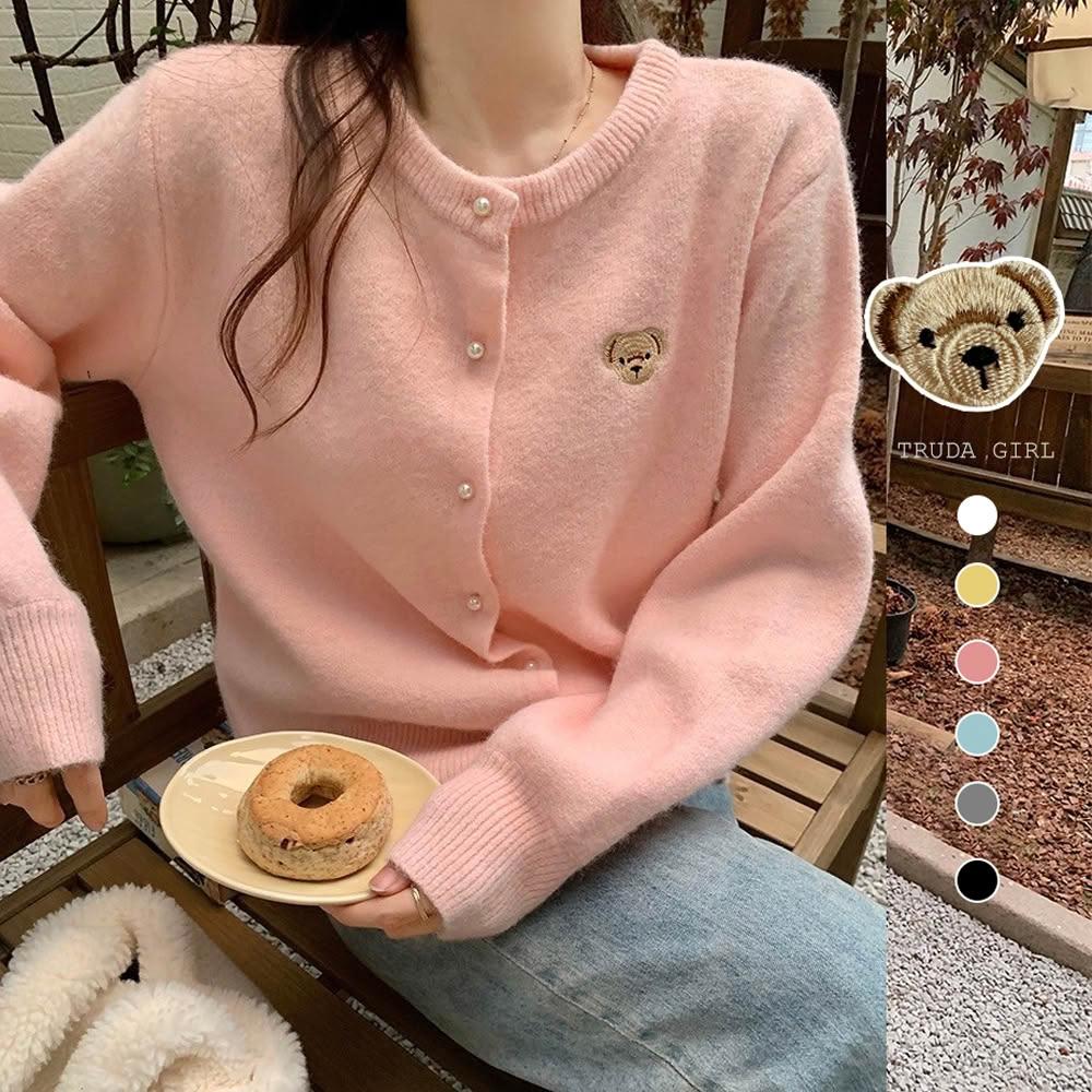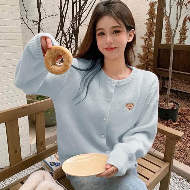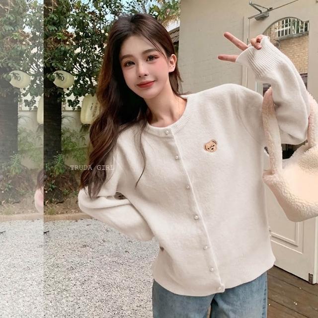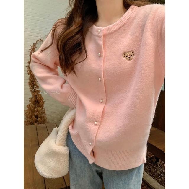 《杜達女孩》威靈頓小熊 浣熊絨小熊刺繡針織外套 毛衣外套 長袖外套 綿羊絨針織外套 女 厚外套 刺繡保暖外套 秋冬外套