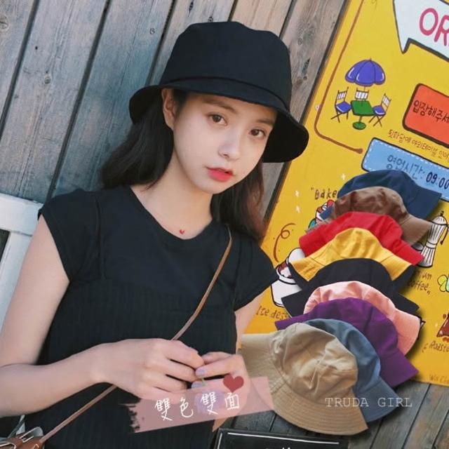《杜達女孩》雙面雙色正反可戴 漁夫帽 簡約休閒帽 百搭 盆帽 防曬帽 純色 圓帽 遮陽帽 帽子 男女通用