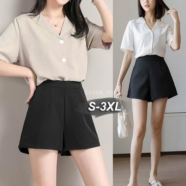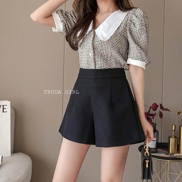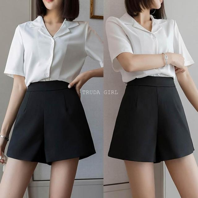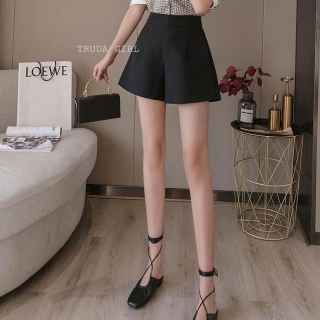 《杜達女孩》雪紡寬鬆高腰西裝短褲 寬褲 A字褲 闊腿褲 薄款西裝短褲 休閒短褲 短褲 西裝褲裙 夏季 大尺碼