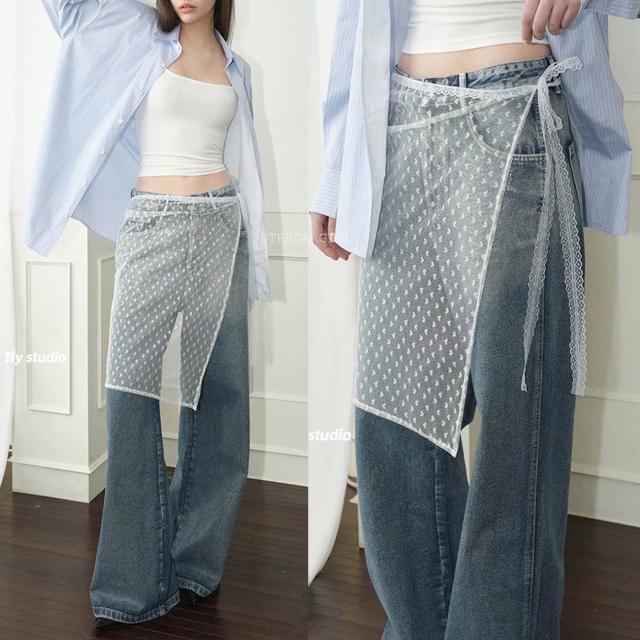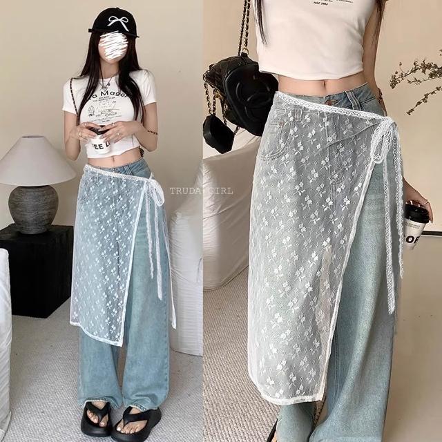 《杜達女孩》韓系疊穿小心機 ins風蕾絲襯裙 遮屁屁蕾絲罩衫 打底裙 遮屁簾 一片式遮臀 疊穿蕾絲外罩 綁帶外罩蕾絲裙