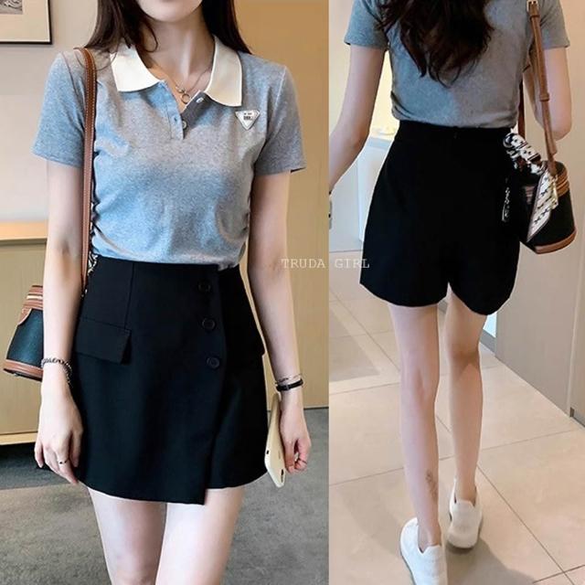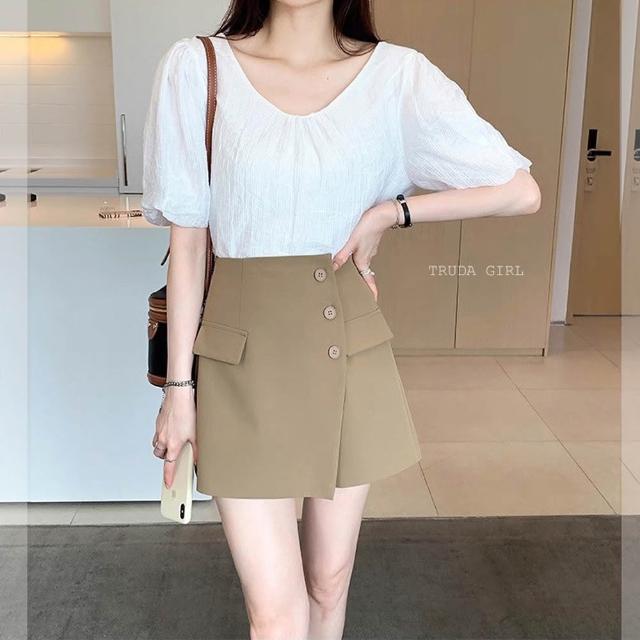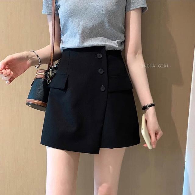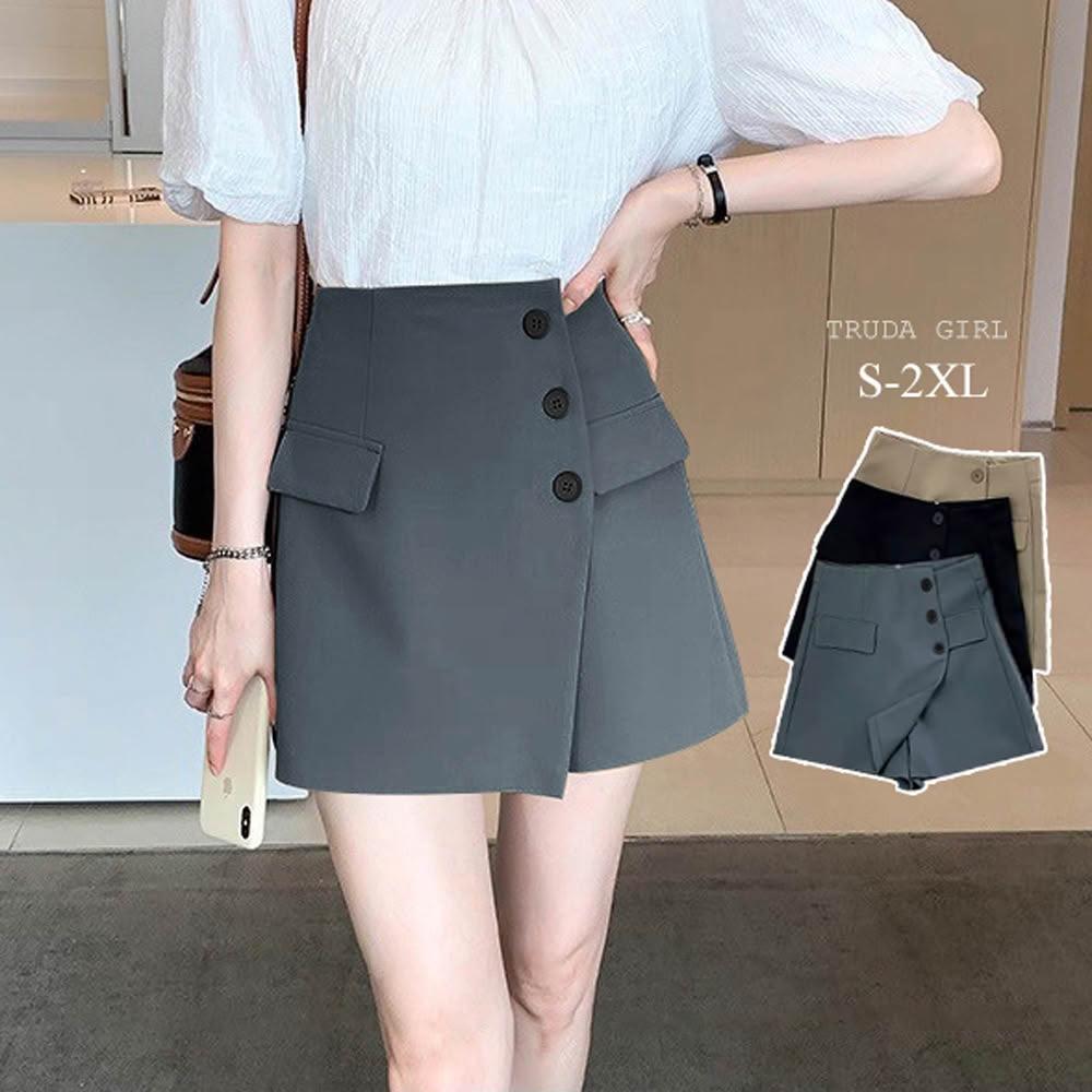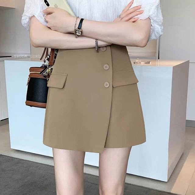 《杜達女孩》優雅攻勢 S-2XL高腰側釦裙褲 西裝短裙 裙子 窄裙 膝上裙 A字裙 工裝裙 高腰短裙 褲裙 排釦短裙 女