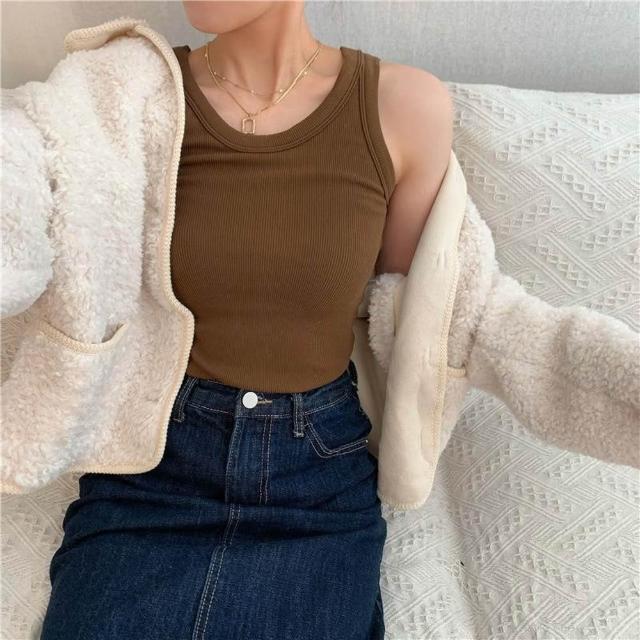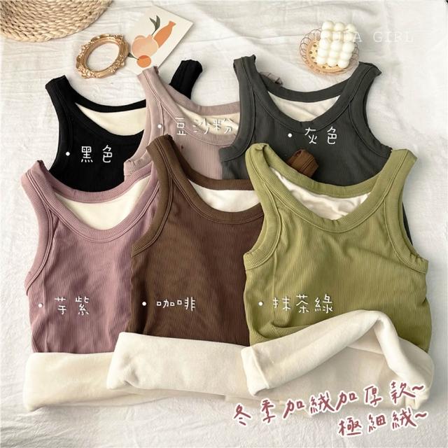 《杜達女孩》極細絨螺紋加絨保暖背心 U領 蓄熱保暖背心 刷毛背心 保暖背心 秋冬內搭背心 加絨背心 無袖背心 吊帶背心