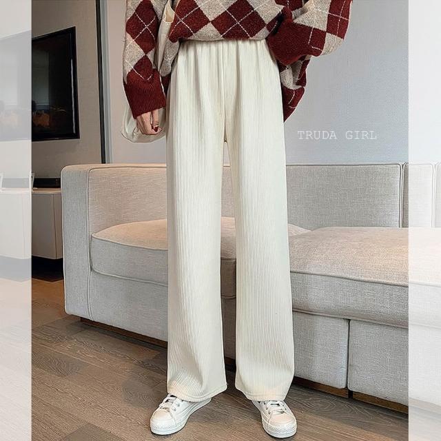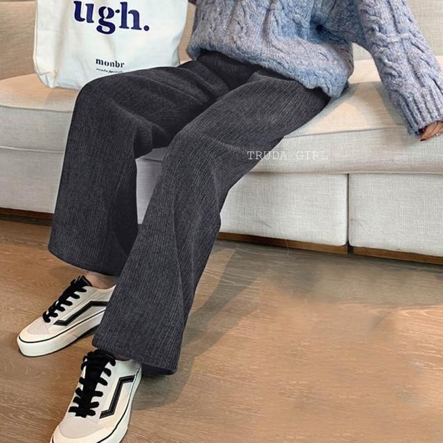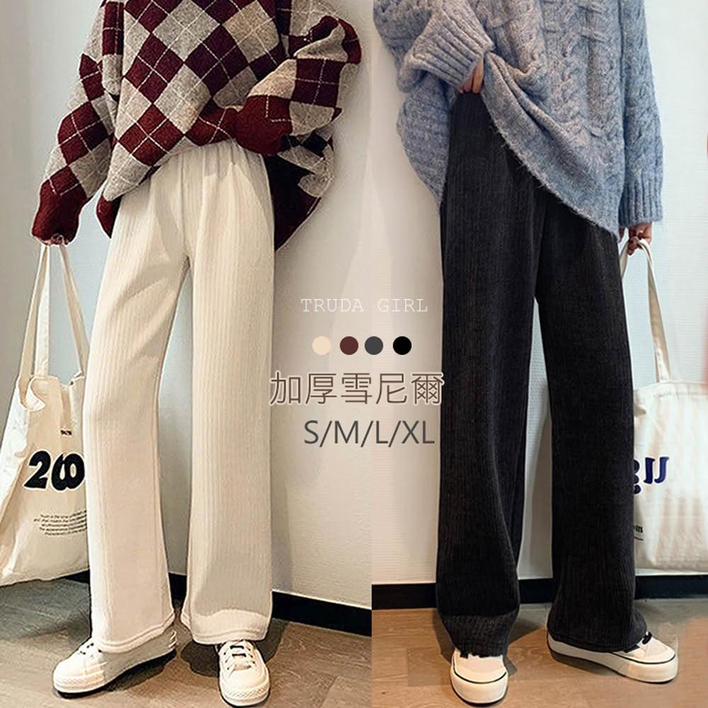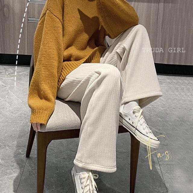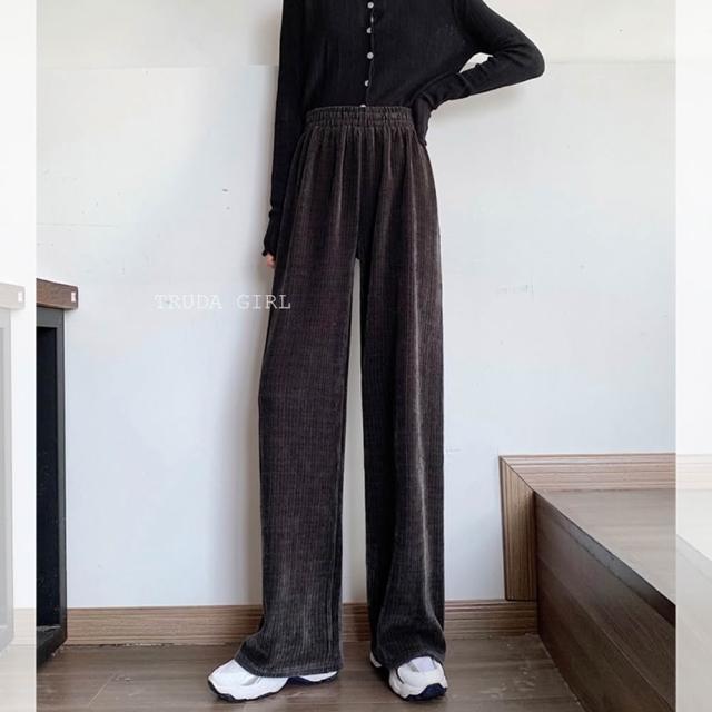 《杜達女孩》重磅高規格雪尼爾直筒落地褲 不起球 直筒褲 闊腿褲 落地褲 秋冬寬褲 拖地褲 長褲 絲絨褲 燈芯絨
