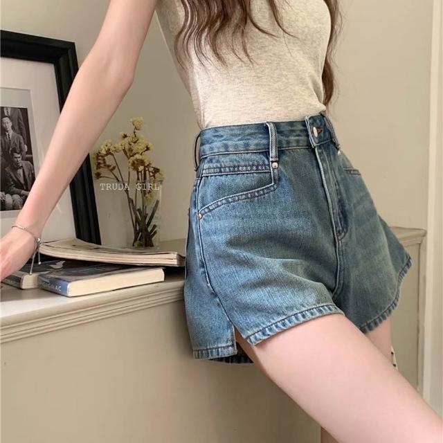 《杜達女孩》美腿濾鏡 S-2XL復古風牛仔短褲 女 熱褲 a字褲 短褲 牛仔短褲 褲子 夏季短褲 高腰牛仔短褲 大尺碼