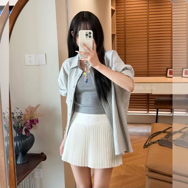 高腰百褶短裙 日常也能穿韓系感