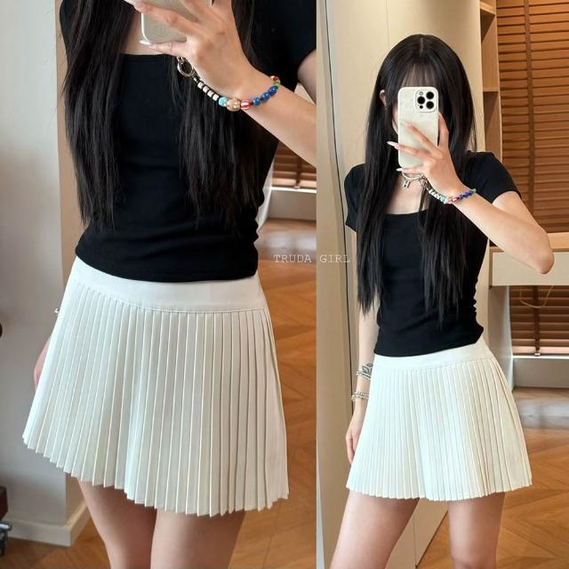 《杜達女孩》元氣濾鏡 .ᐟ 學院風高腰百褶裙 膝上裙 百褶裙 短裙 辣妹 高腰短裙 裙子 百折裙 西裝短裙 安全褲迷你裙