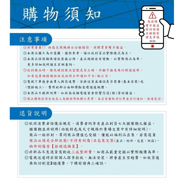 - 為保障您購物權益,開箱過程請全程錄影;如有問題請使用APP透過「問問」與商店聯繫,祝您購物愉快。