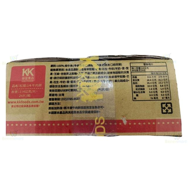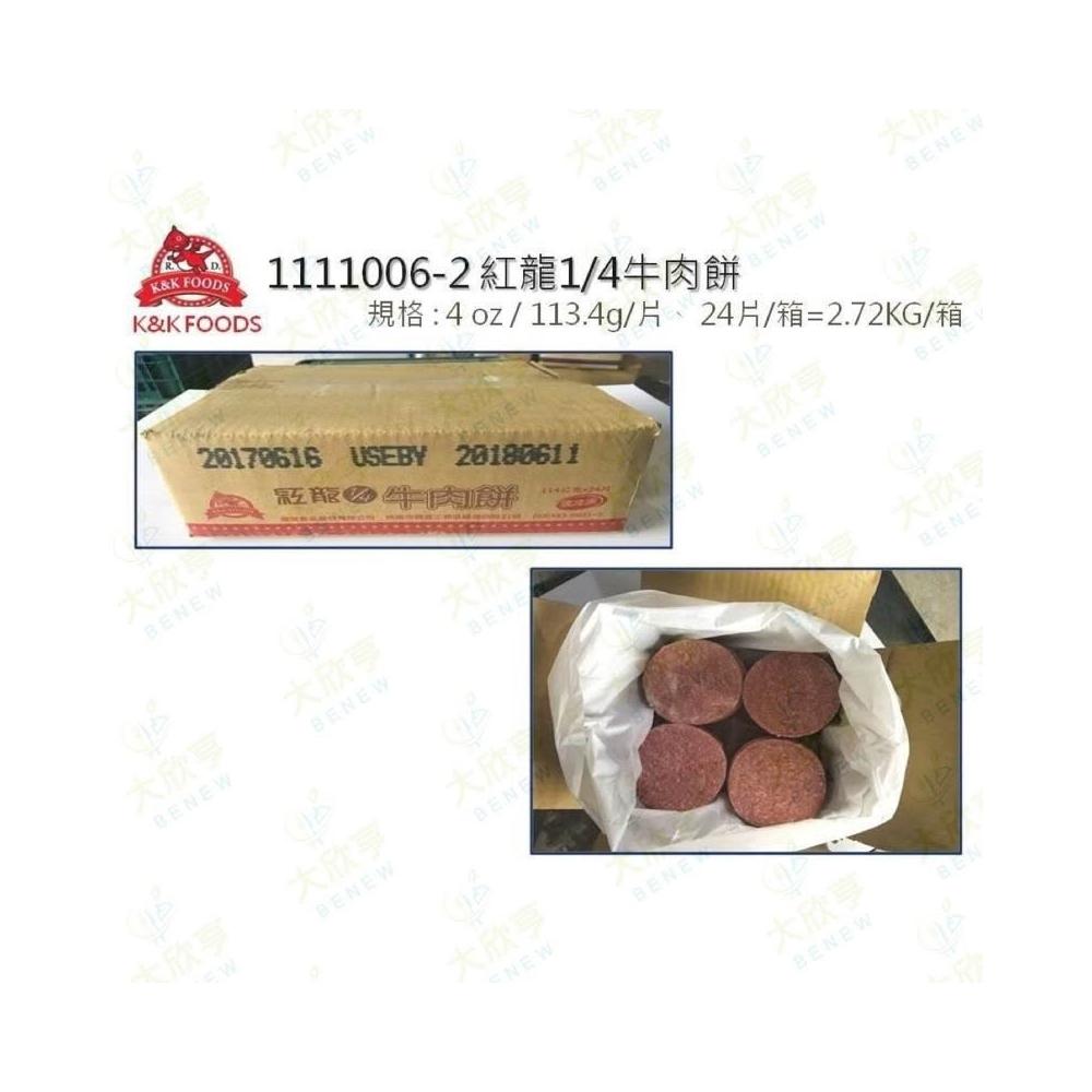 大欣亨紅龍冷凍1/4牛肉漢堡排 (澳洲)【每片113公克24片盒裝/每盒2.712公斤】B002041