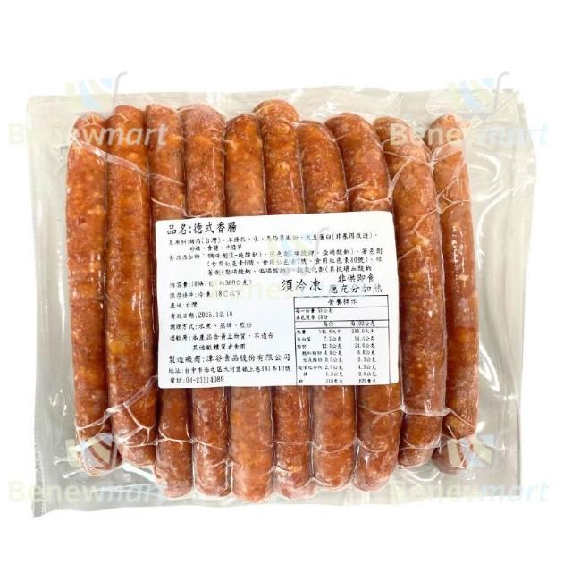 大欣亨津谷冷凍德式香腸(台灣豬肉)-原味&蒜味 【每包500公克*約50公克*每包10支】