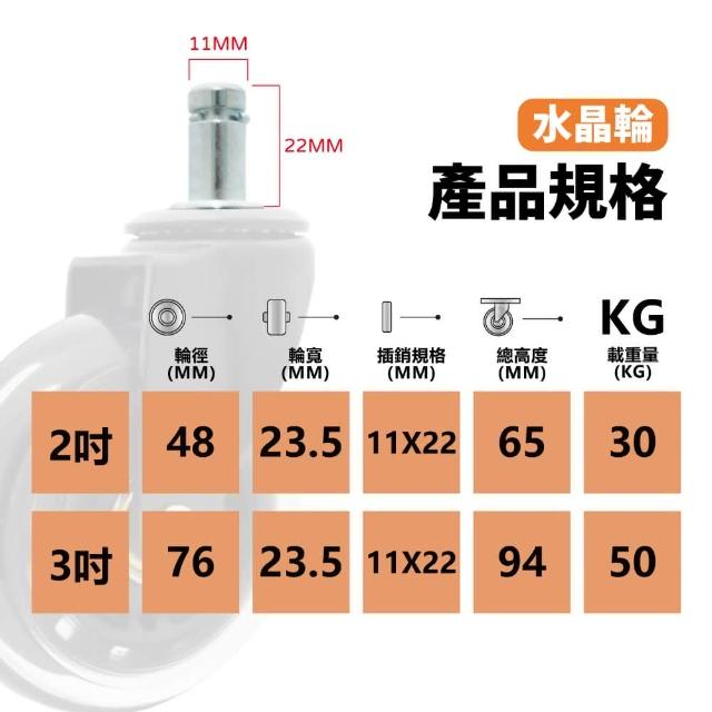 卓力腳輪2吋水晶輪-活動輪-插銷(辦公椅輪子 PU輪 輪子 電腦椅輪子 電腦椅輪 滑板輪 辦公輪 萬向輪)
