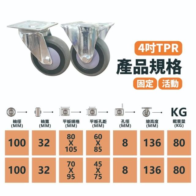 卓力腳輪4吋TPR方盤活動輪-手推車專用輪(方盤 台灣製 腳輪 輪子 TPR 儀器輪 耐用靜音 推車輪子 D-4、5吋手推車腳輪)