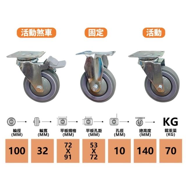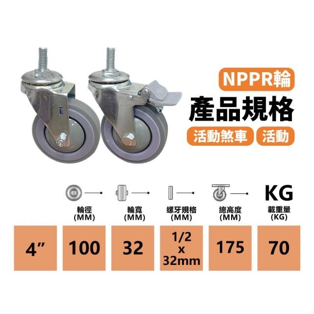 4吋TPR活動煞車輪 NPPR(工業萬向輪子 靜音輪 4分牙 台灣製 4吋輪 耐重70KG 手推車 儀器輪 煞車輪 推車輪 卓力腳輪專賣店 D-4煞車)