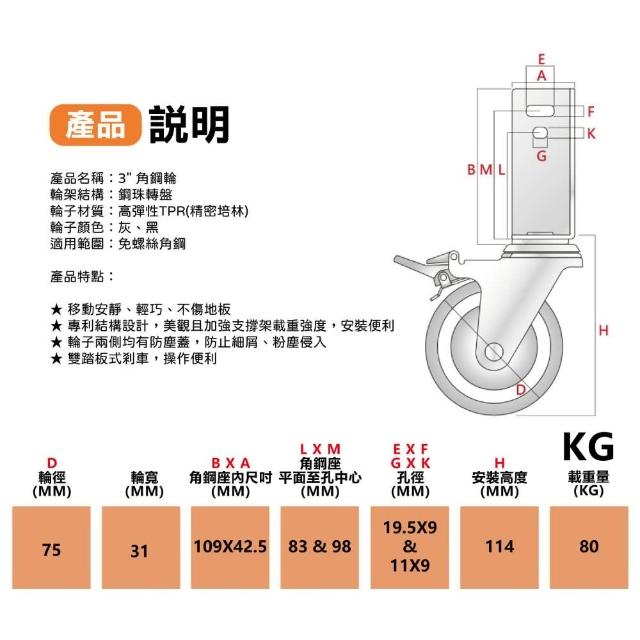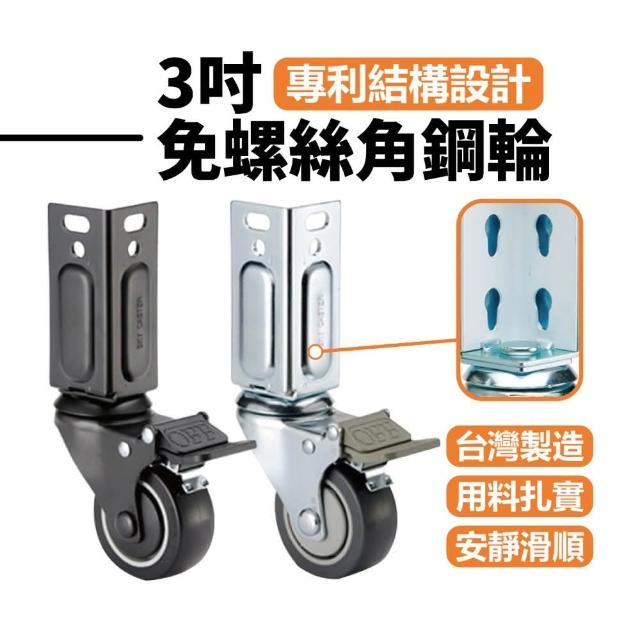 角鋼專用3吋剎車輪免螺絲角鋼架專用 TPR 靜音輪 1組4入 卓力腳輪