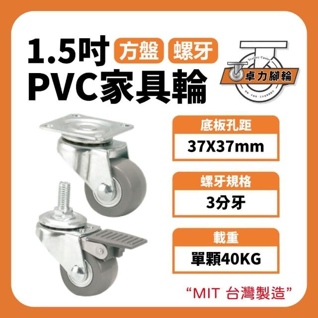 卓力腳輪1.5吋PVC輪-活動煞車輪-灰(腳輪 輪子 台灣製 PU TPR 家具輪 方盤 螺牙 耐用靜音 煞車輪 儀器輪 推車輪子 卓力腳輪專賣)