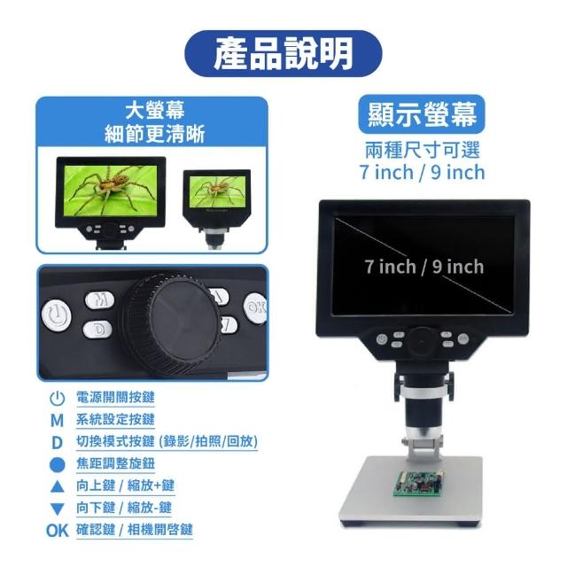 電子數位顯微鏡 - 9吋螢幕(G1600 數位顯微鏡 電子顯微鏡 數碼顯微鏡 顯微鏡 1200X 1600X 高清1200萬畫素 專業級光學 生物 科學 實驗 1600倍)