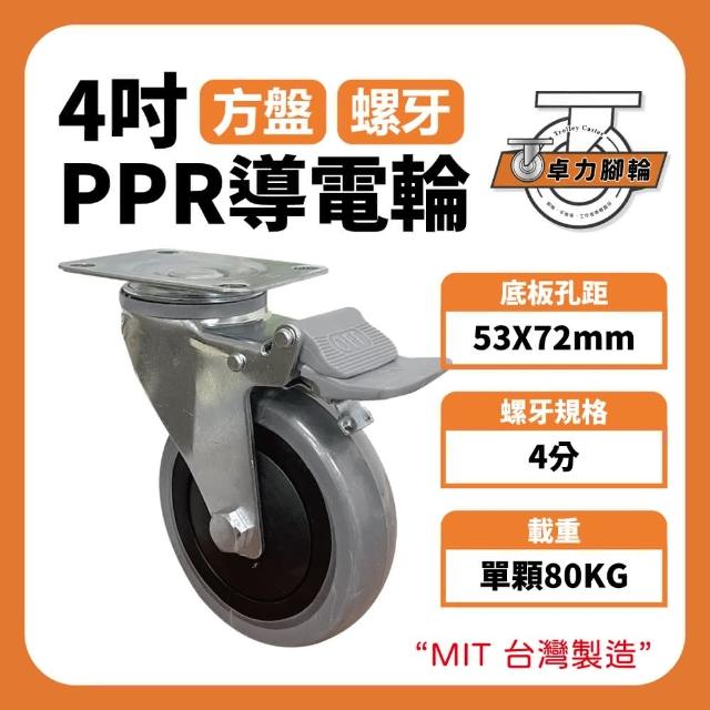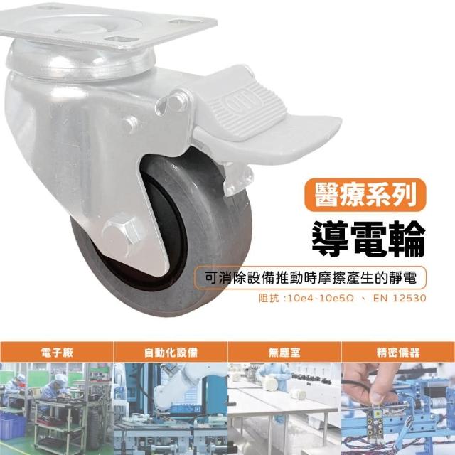 卓力腳輪4吋導電輪-活動煞車輪(導電輪 4吋輪 工業輪 電子廠 無塵室 4分牙 防靜電輪 阻抗輪 靜電輪 煞車輪 萬向輪 卓力腳輪)