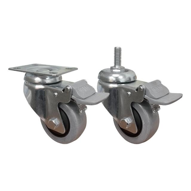 卓力腳輪4吋導電輪-活動煞車輪(導電輪 4吋輪 工業輪 電子廠 無塵室 4分牙 防靜電輪 阻抗輪 靜電輪 煞車輪 萬向輪 卓力腳輪)