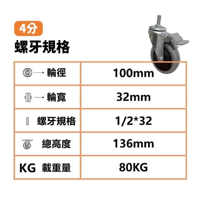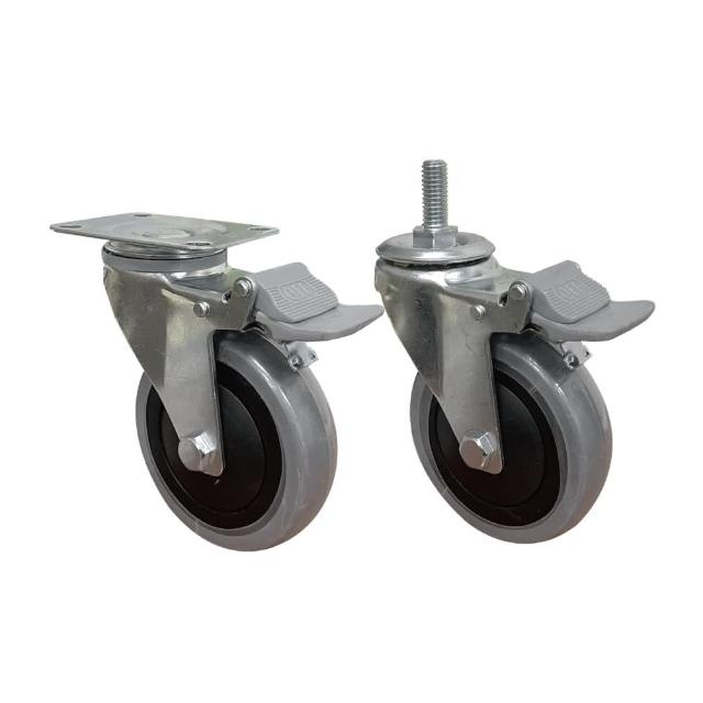 卓力腳輪4吋導電輪-活動煞車輪(導電輪 4吋輪 工業輪 電子廠 無塵室 4分牙 防靜電輪 阻抗輪 靜電輪 煞車輪 萬向輪 卓力腳輪)