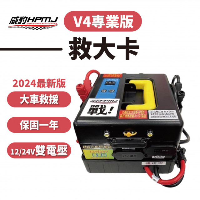 HPMJ 威豹電池台灣製造 威豹 救大卡-V4專業版(威豹 救大卡 V4專業版 12V+24V雙電壓 救車電源 挖土機 聯結車 救援電池 電霸)