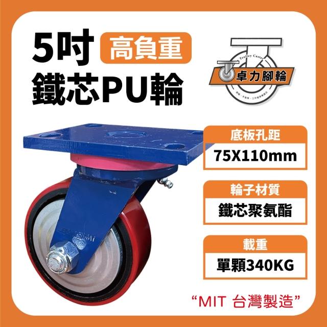卓力腳輪 5吋高荷重PU輪 - 活動煞車輪 (PU輪 重型輪 工業輪 汽車工業輪 萬向輪 耐重輪 腳輪 輪子 橡膠輪 卓力腳輪 D)