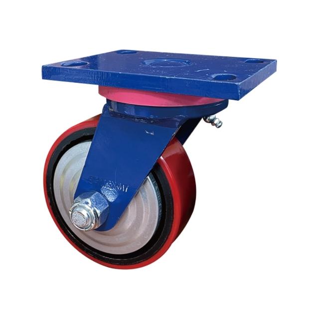 卓力腳輪 5吋高荷重PU輪 - 活動煞車輪 (PU輪 重型輪 工業輪 汽車工業輪 萬向輪 耐重輪 腳輪 輪子 橡膠輪 卓力腳輪 D)
