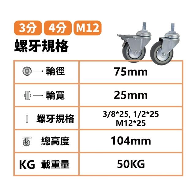 卓力腳輪 3吋TPR輪 (M12、3分牙、4分牙、方盤 台灣製 腳輪 工業萬向輪子 靜音輪 煞車輪 儀器輪 推車輪子 活動輪W 超商限8顆)